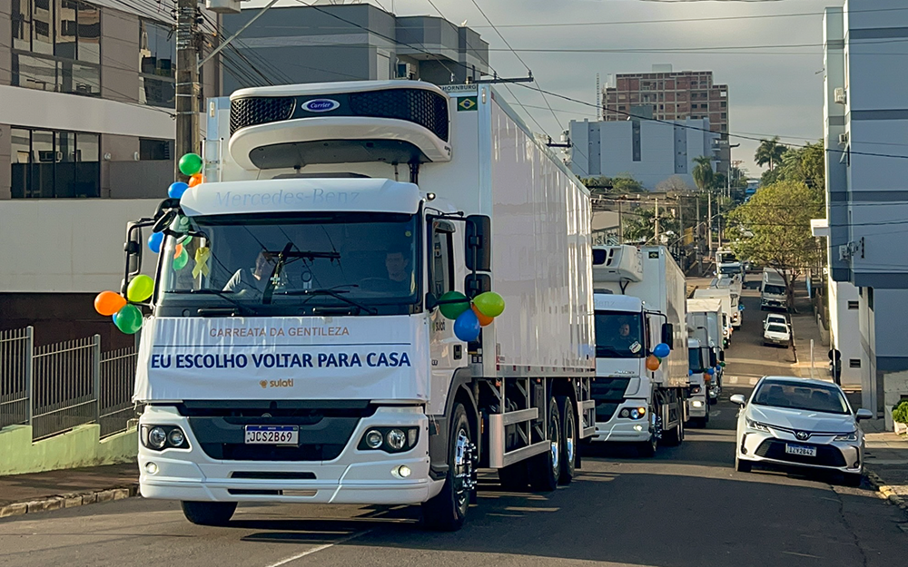No sábado, 31 de maio, a VII Carreata da Gentileza, adiada em 2024 por conta das enchentes, finalmente foi realizada e ainda surpreendeu. Além de novas empresas participantes, o momento também reuniu motocicletas e carros da comunidade. Foram mais de 100 veículos, em uma fila pela segurança no trânsito, que receberam bênção feita pelo padre Alfonso Antoni, em frente à igreja Nossa Senhora do Perpétuo Socorro.
